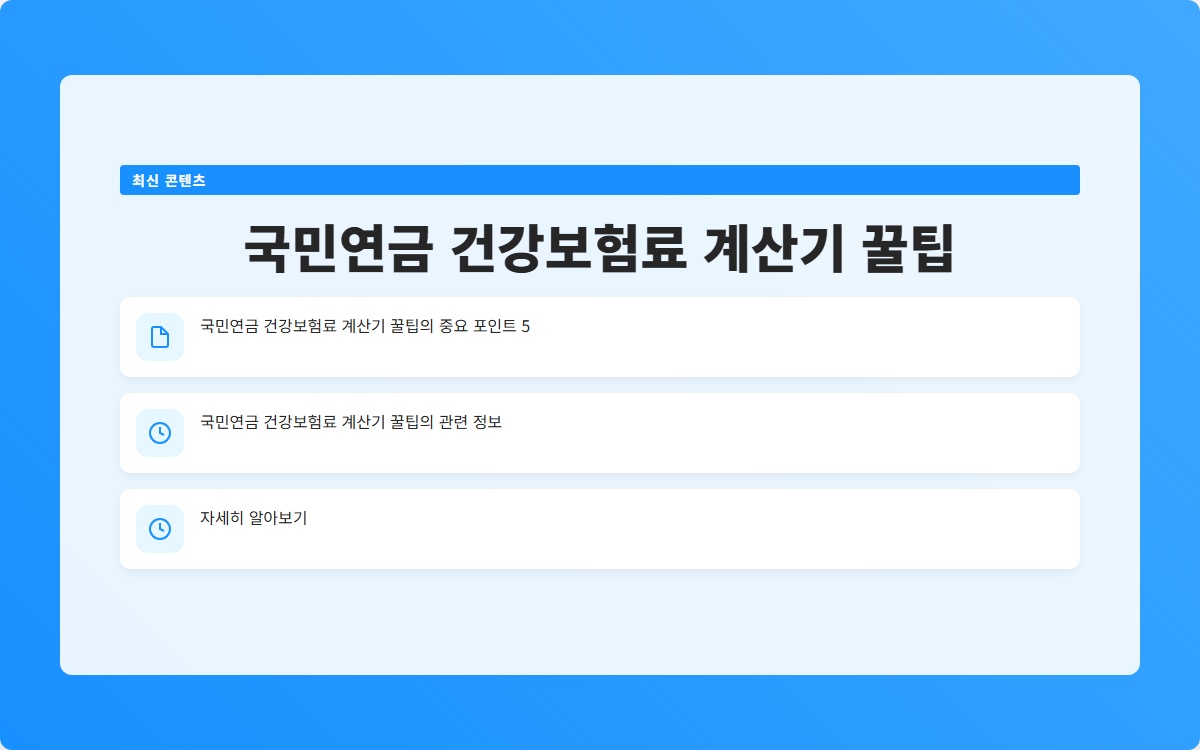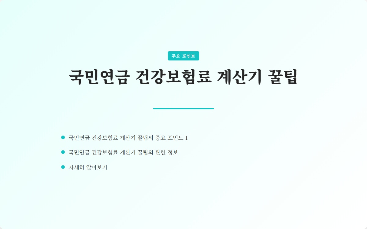 국민연금 건강보험료를 정확히 계산하는 것이 중요합니다. 다음의 단계별 해결책을 통해 쉽게 계산할 수 있습니다: