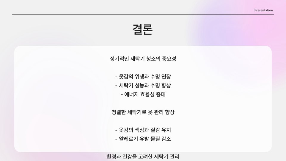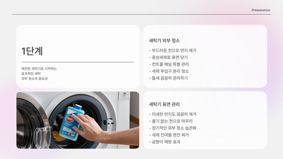 이와 같은 단계별 점검으로 세탁기는 항상 최상의 상태를 유지할 수 있습니다. 나중에 발생할 수 있는 문제들을 미리 방지하고, 오랫동안 나의 세탁기와 함께하는 데 큰 도움이 될 것입니다.