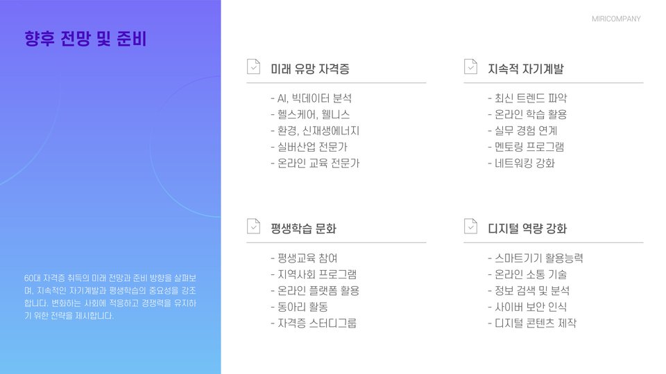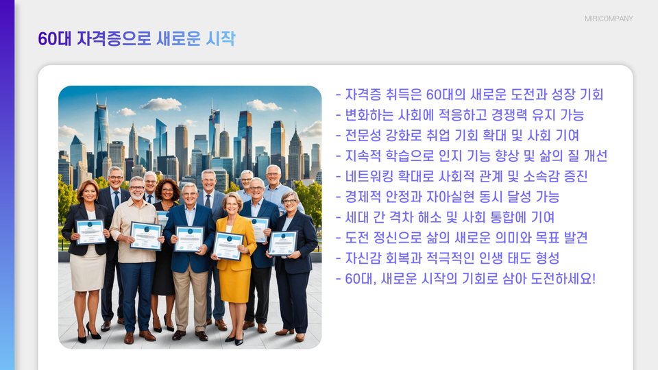 - 60대 자격증은 인생 제2막을 맞이하는 중요한 기회입니다.