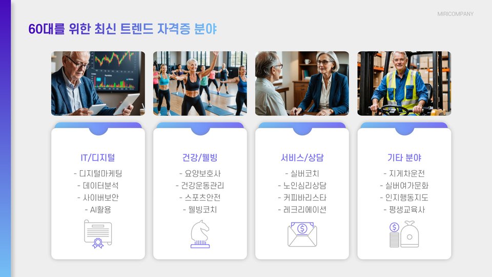 • 60대 자격증은 인생 제2막을 맞이하는 중요한 기회입니다.